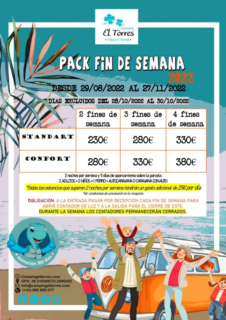 ????¡Pack fin de semana 2022 en tu camping en la costa blanca!????
